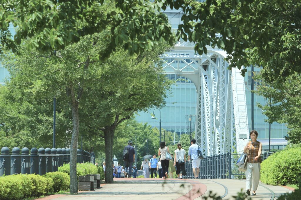 - 日本大通り側からだと象の鼻パークの横に架けられた新港橋梁(新港橋)で、