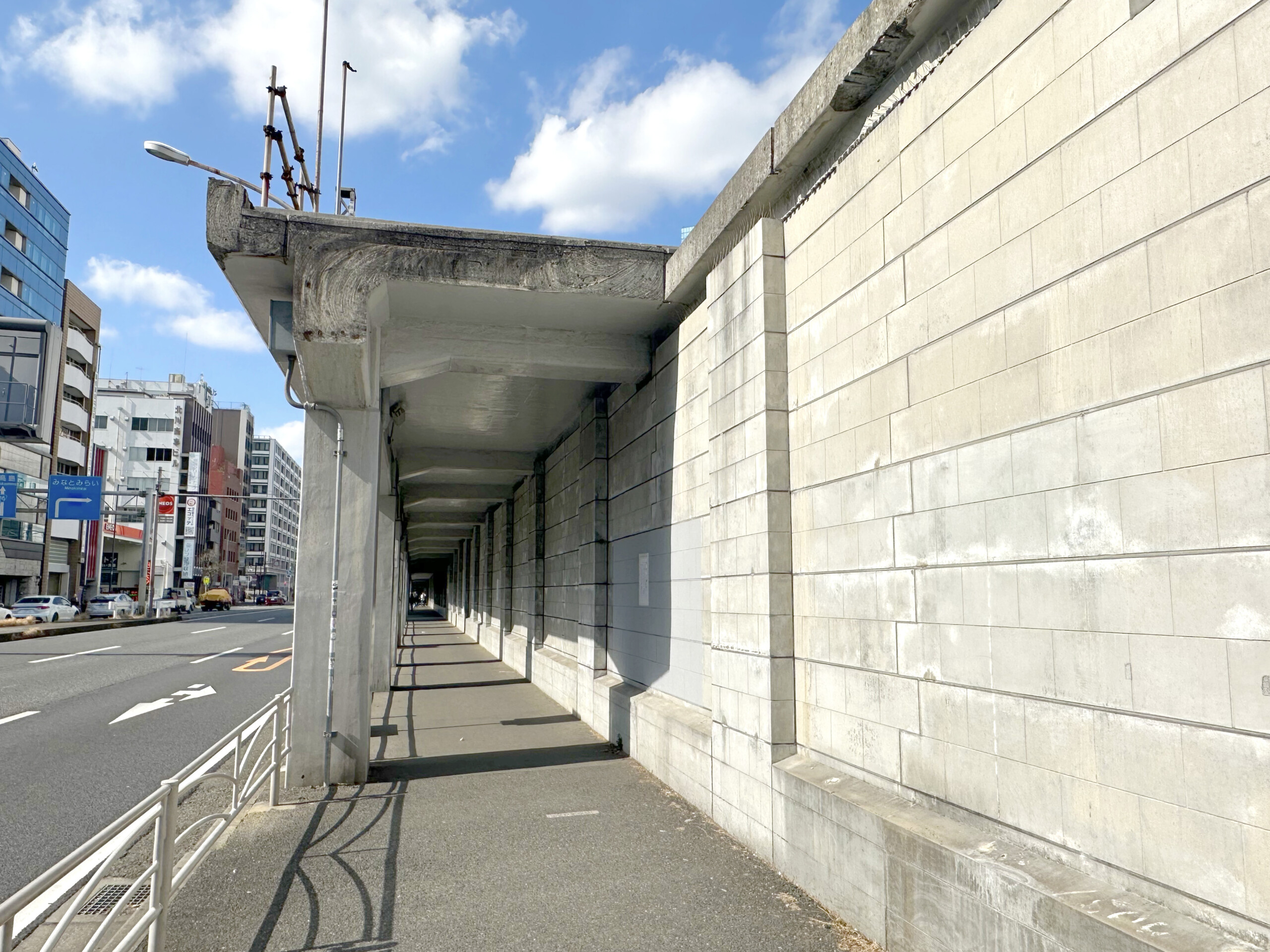 「旧東横線跡」は、北改札のさらに少しだけ先(横浜方面)から国道16号線に沿う形で現・横浜駅方向へと延々続きますが、現在はガード下が歩道、横が遊歩道となっています。