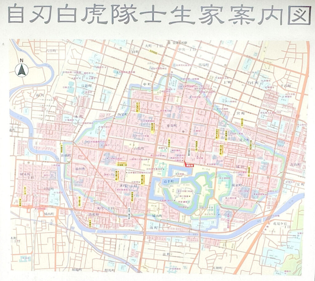 その城前の中央やや西寄りの地点に「白虎隊・西川勝太郎生家跡」が残されています。
