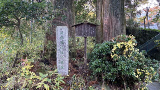 元箱根港から箱根町港バスターミナル方面に向かって少し歩くと(芦ノ湖畔を南下する形ですね)、ほどなく国道一号線沿いは杉並木の道となりますが、”かつての箱根”を思わせる雰囲気が強く出た一帯の中、箱根町港方面に向かって左側道沿いに、葭原久保の一里塚跡石碑が見えてきます。