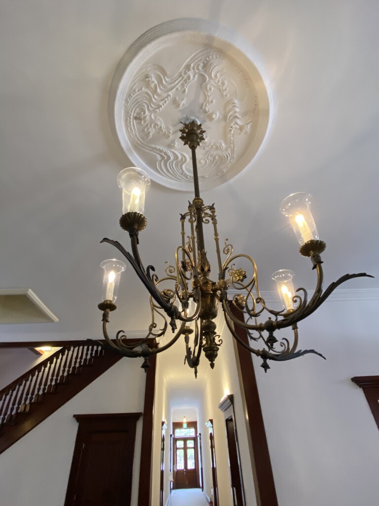 つるされているシャンデリアの上には、”天井中心飾り”があるのがわかります。