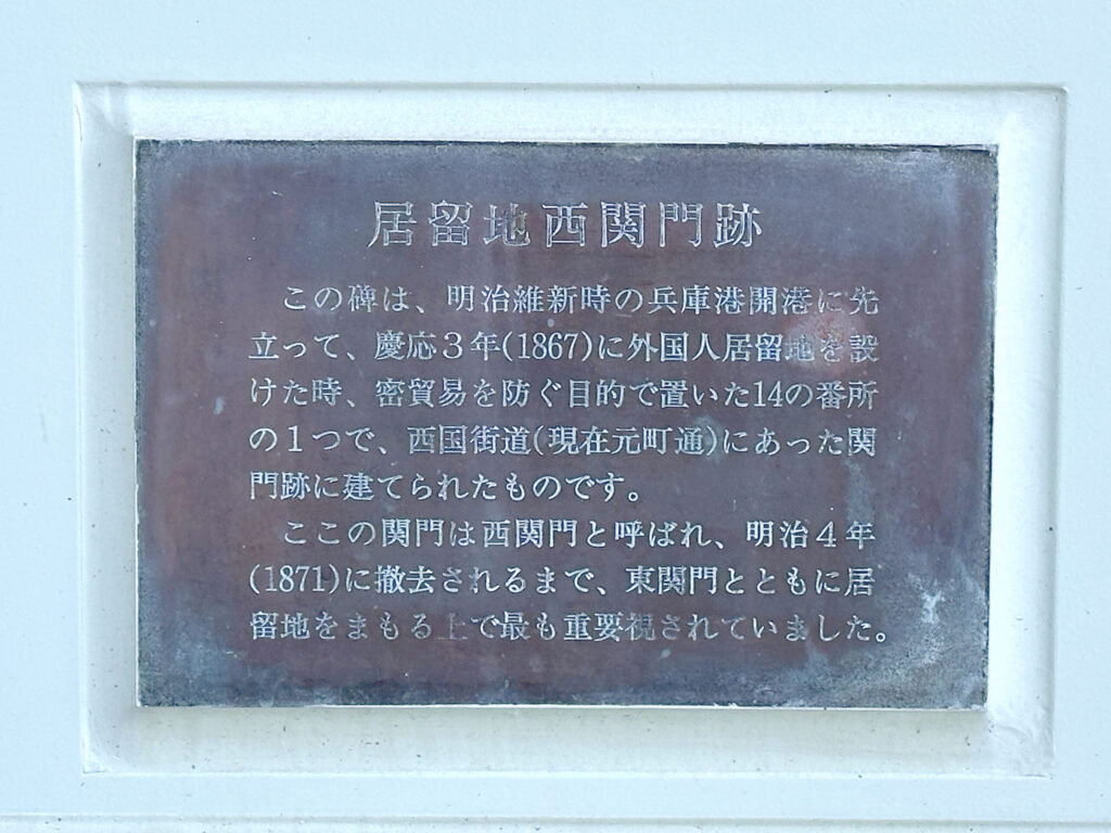 元町商店街入り口と、居留地西関門跡