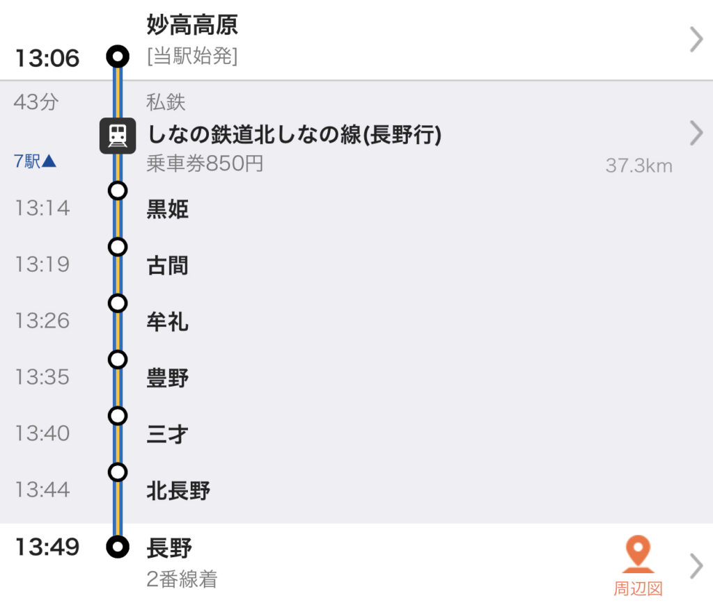 妙高高原駅を出発後、長野駅までは約40分の旅です。