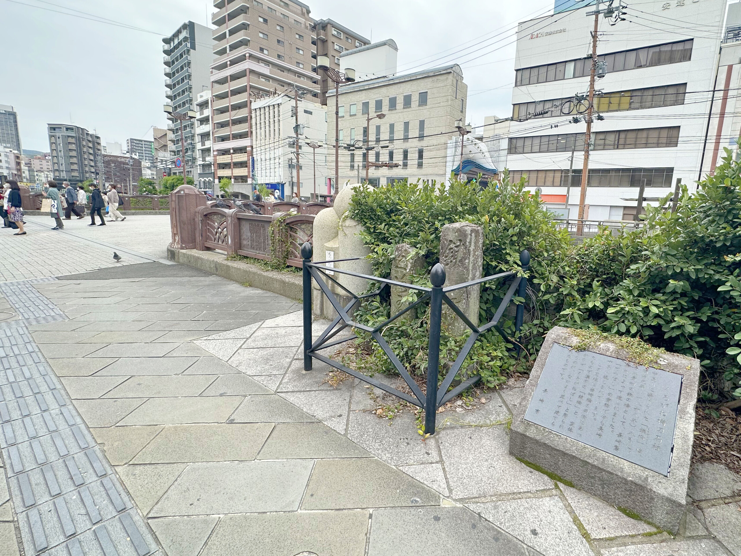 現在の銕橋は、”橋”というよりはちょっとした広場のような道となって中島川上に架かっていますが、