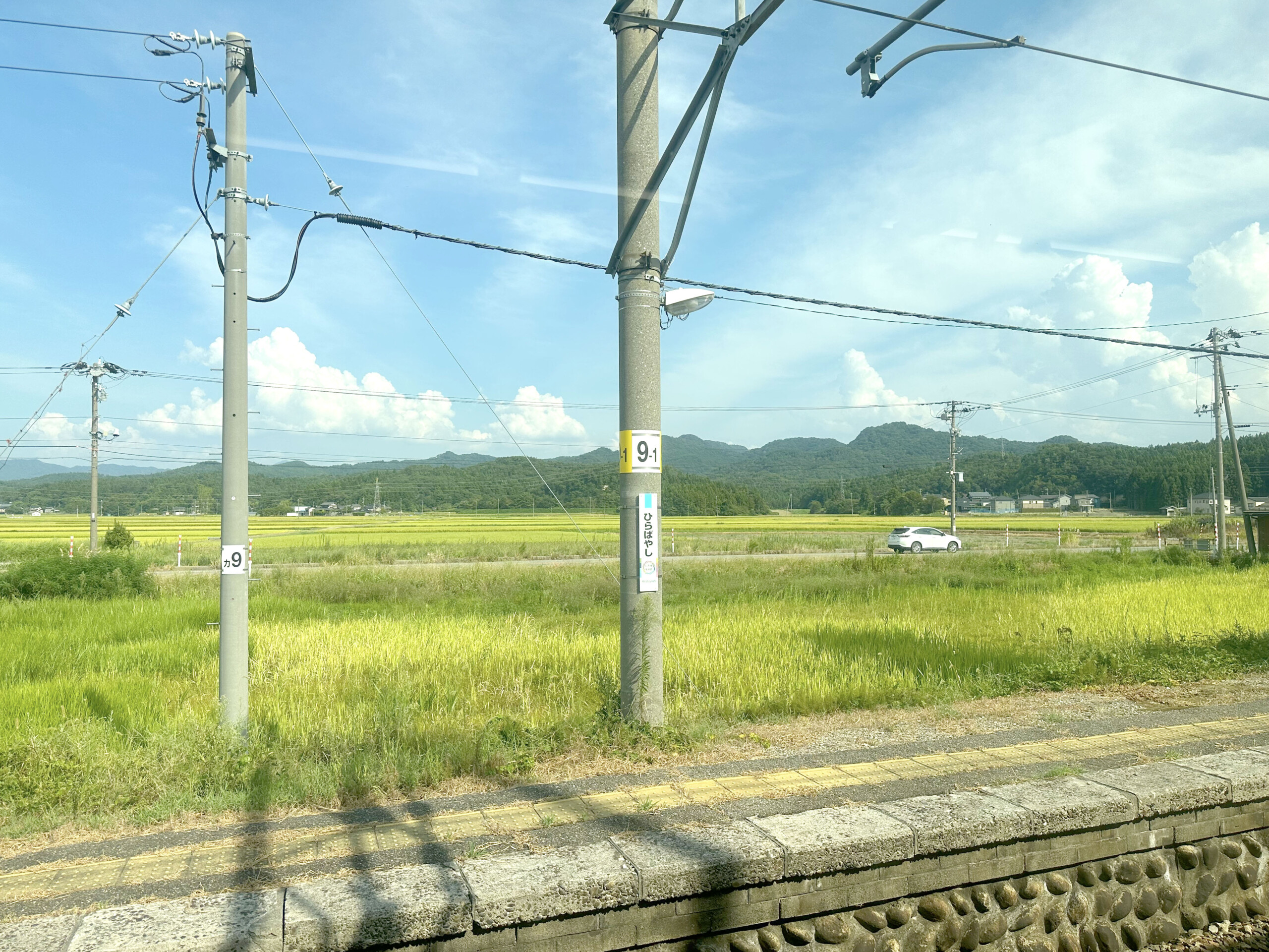 駅周辺などには住宅街があるものの、基本的に田園風景は途切れることなく続き、