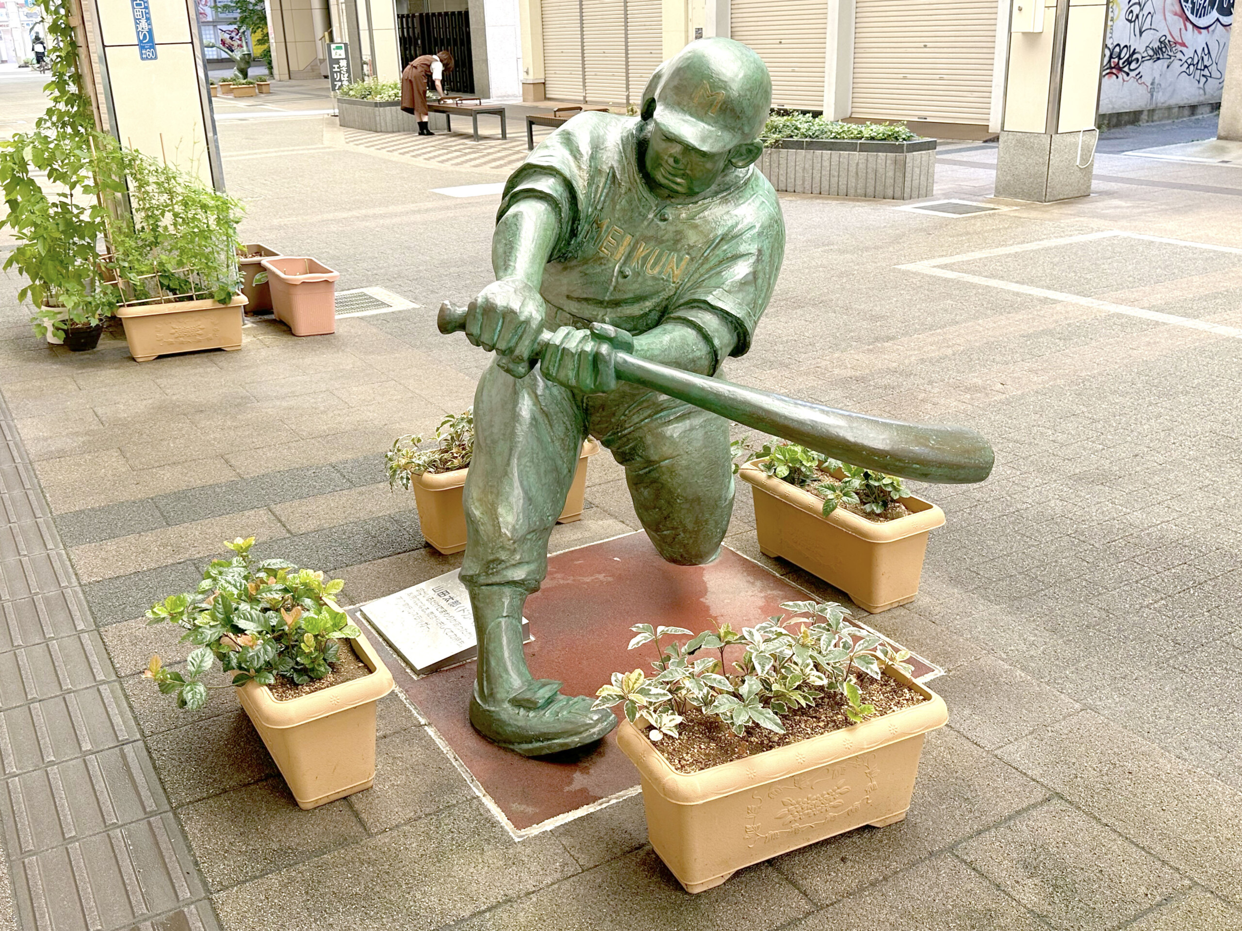 古町通商店街には、5番町から9番町まで”古町”の名を冠した商店街エリアが5つあるのですが、このうちの5番町商店街のアーケードに、野球漫画の第一人者、”御大”こと水島新司さん(新潟市出身)のマンガ・”ドカベン”等のキャラクターの像が並べられた、通称ドカベンロードが用意されています。