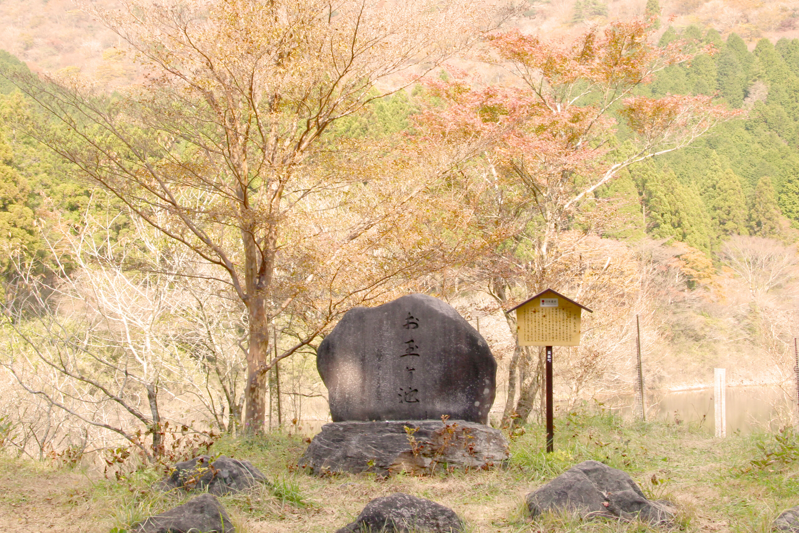 夜の箱根で関所の柵に引っかかってしまったのち、夜明けには関所の役人に見つかり身柄拘束されると、それから二か月半の取り調べの後に死罪に処されてしまった、そのことを哀れんだ土地の人たちによって、奈津那ヶ池は”お玉が池”と呼ばれるようになった、というのが命名の由来にあたる部分です。