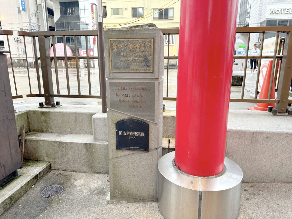 中華街の内部には、かつて大火後に作られた新地の倉跡の碑が、案内板とともに置かれています。