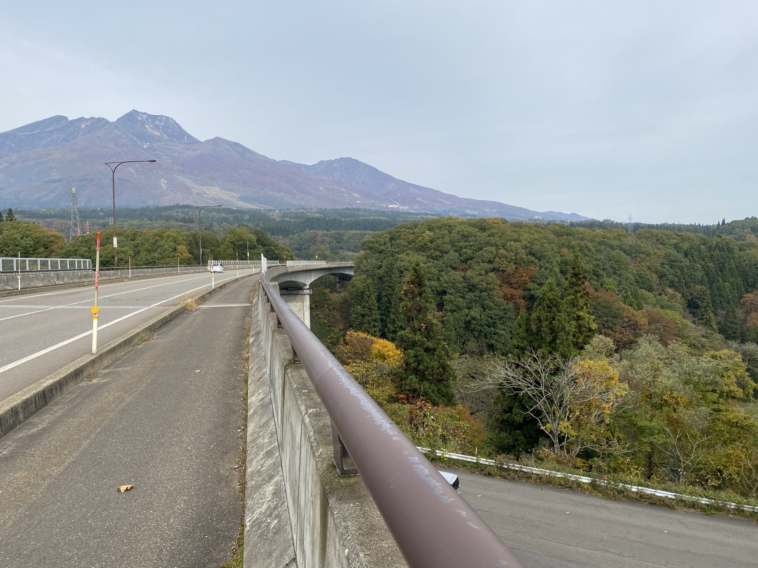 信越大橋の向こうにそびえているのは、つい昨日まで身近に見ていた妙高の山々です。