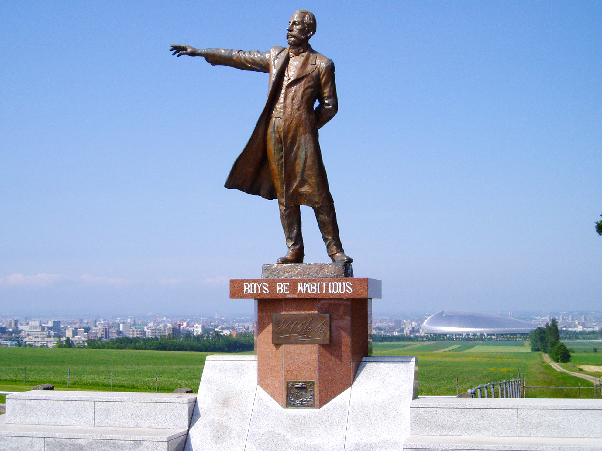 その背後には、同じく”羊ヶ丘”の住所を持つ札幌ドーム(札幌市豊平区羊ヶ丘)の屋根も視界に入って来ますが、1976(昭和51)年に制作された像は「右手を挙げる独特のポーズは「遙か彼方にある永遠の真理」を指し、そこに向かい大志を抱けとの思い」(「」内は公式サイトより引用)を表しています。