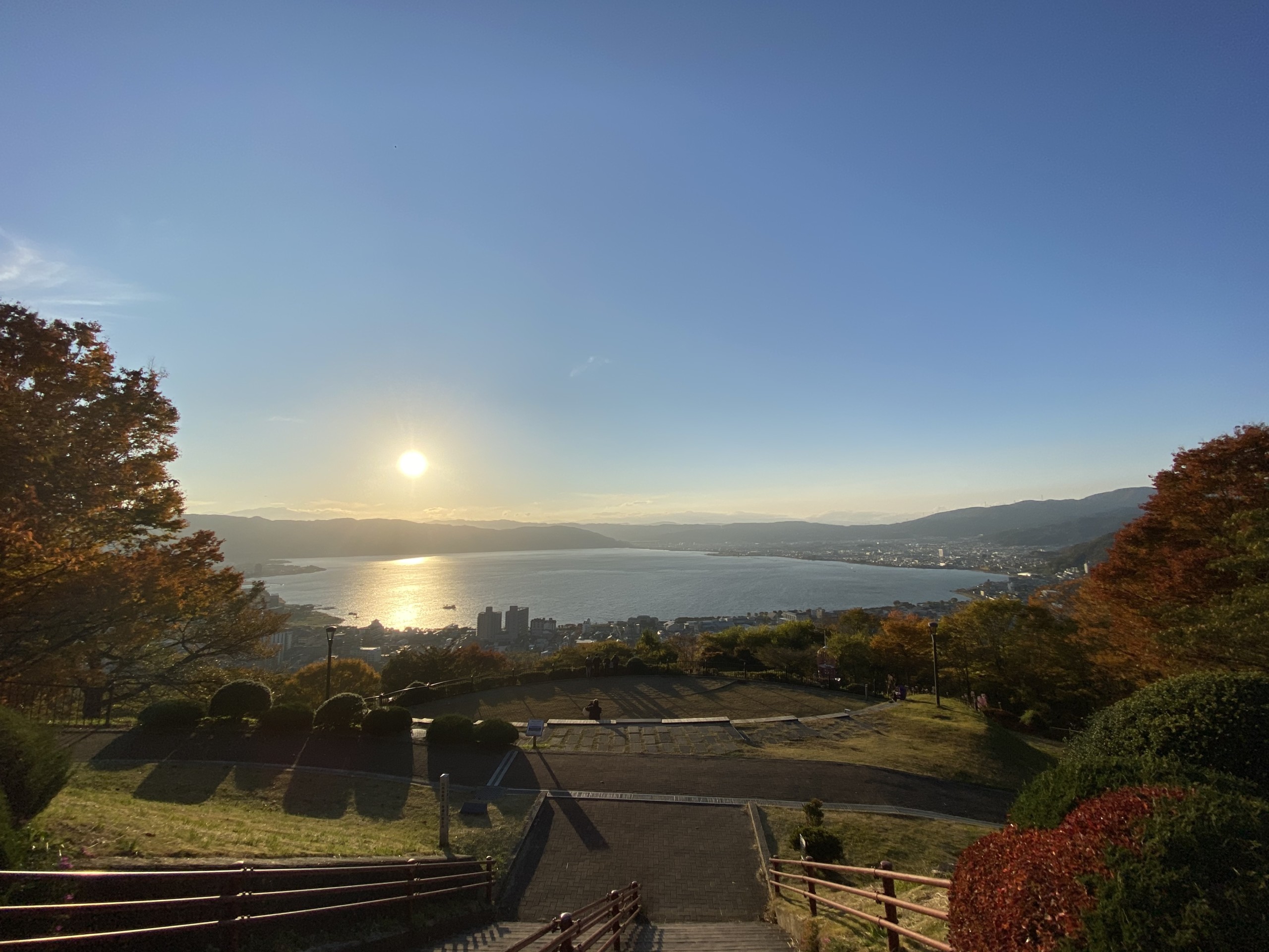 映画”君の名は”(公式サイト)の糸守湖のモデルだとされている、諏訪湖を望める高台の名所ですね。