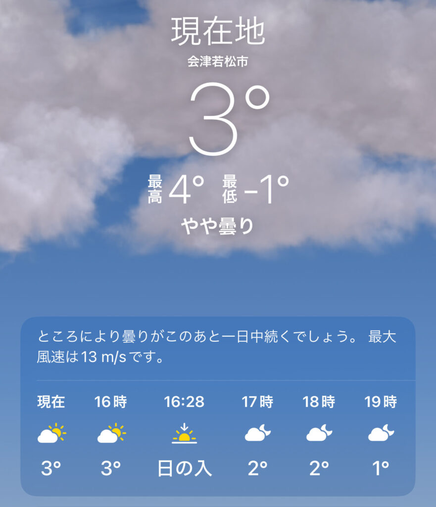 首都圏との同時期(12月の日中~夕方平均気温)比較で10℃は違いませんが、それでも10℃近く違うということで、厚着はしているつもりでも、染みてくる寒さは感じました(参考:気象庁公式サイト “横浜(神奈川県) 日平均気温の月平均値“)。