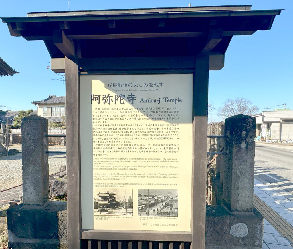 阿弥陀寺は、JR只見線・七日町駅の、ほぼ目と鼻の先に位置するお寺です。